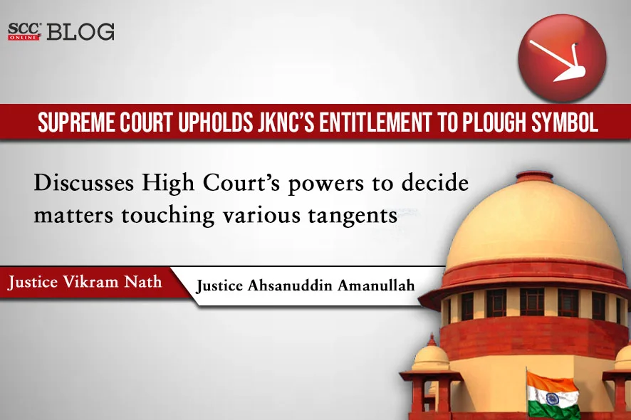 Supreme Court: In an appeal filed against decision of Division Bench of Jammu and Kashmir and Ladakh High Court upholding interim order passed by the Single Judge on 9-08-2023 against refusal of plough symbol to Jammu & Kashmir National Conference for General Elections of Ladakh Autonomous Hill Development Council, Kargil (‘LAHDC’), the Division Bench of Vikram Nath and Ahsanuddin Amanullah*, JJ. set aside the entire election process so conducted and issued directions for conduct of elections afresh.