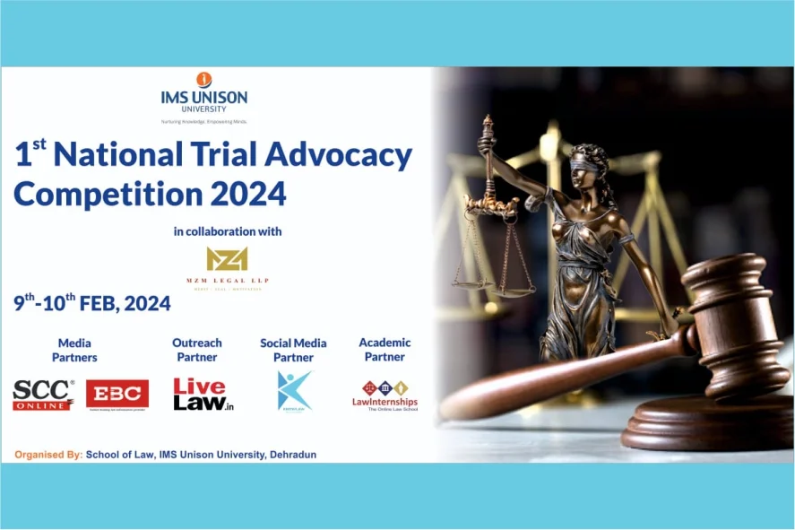 With immense pleasure, we are glad to announce that IMS Unison University (School of Law), Dehradun is organizing its inaugural National Trial Advocacy Competition (9th – 10th February 2024). A Trial Advocacy Competition is a method of clinical education with a model court trial offered through simulation. It teaches the law students in practice before the Criminal Court.